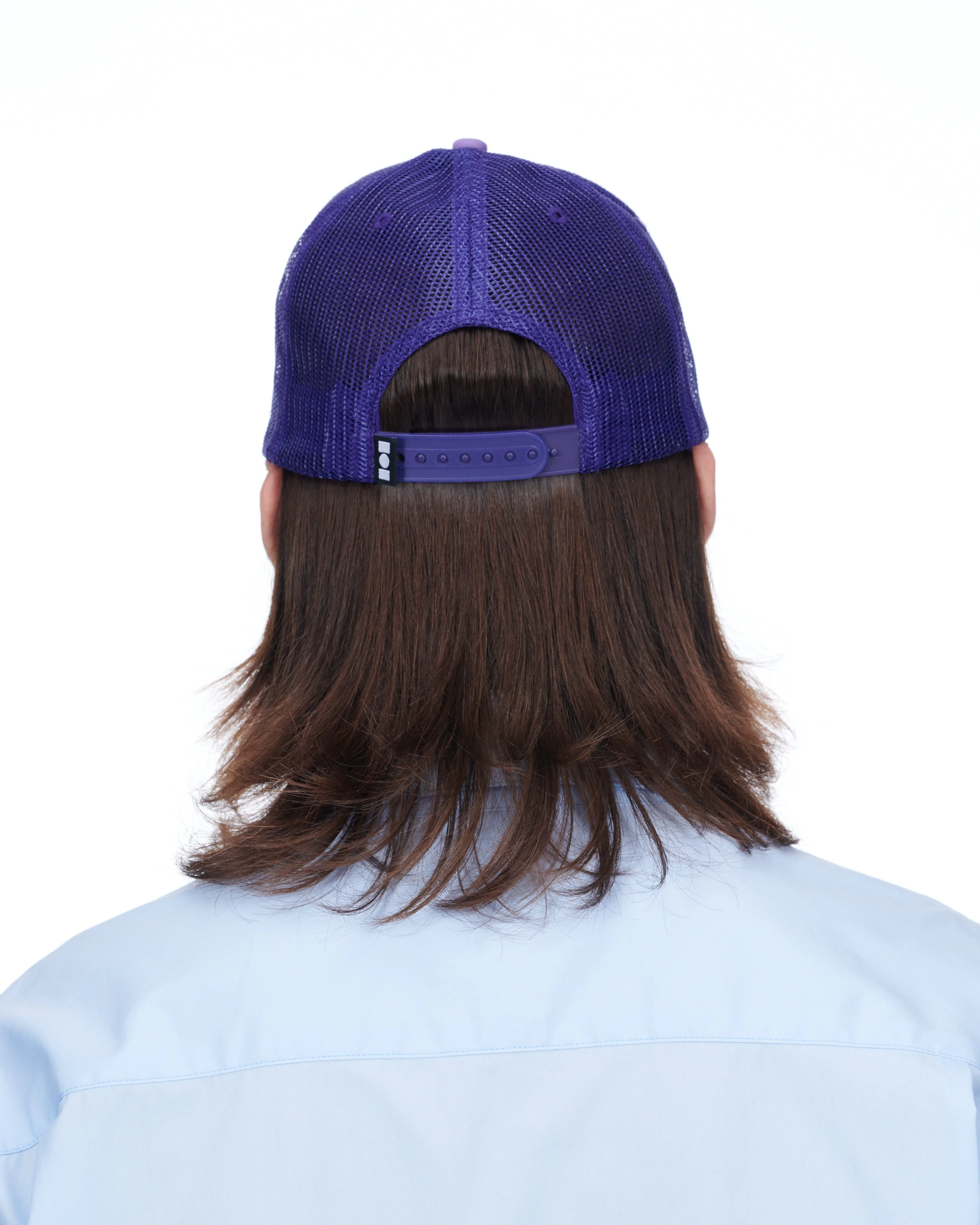 PURPLE AND WHITE COTTON TWILL TRUCKER HAT