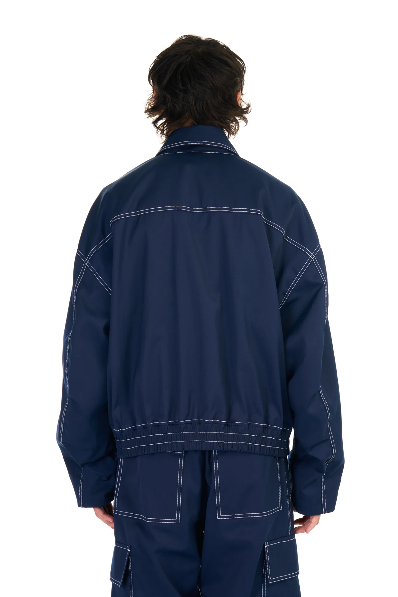 NAVY TECH TWILL OVERSIZED BOMBER JACKETĀ